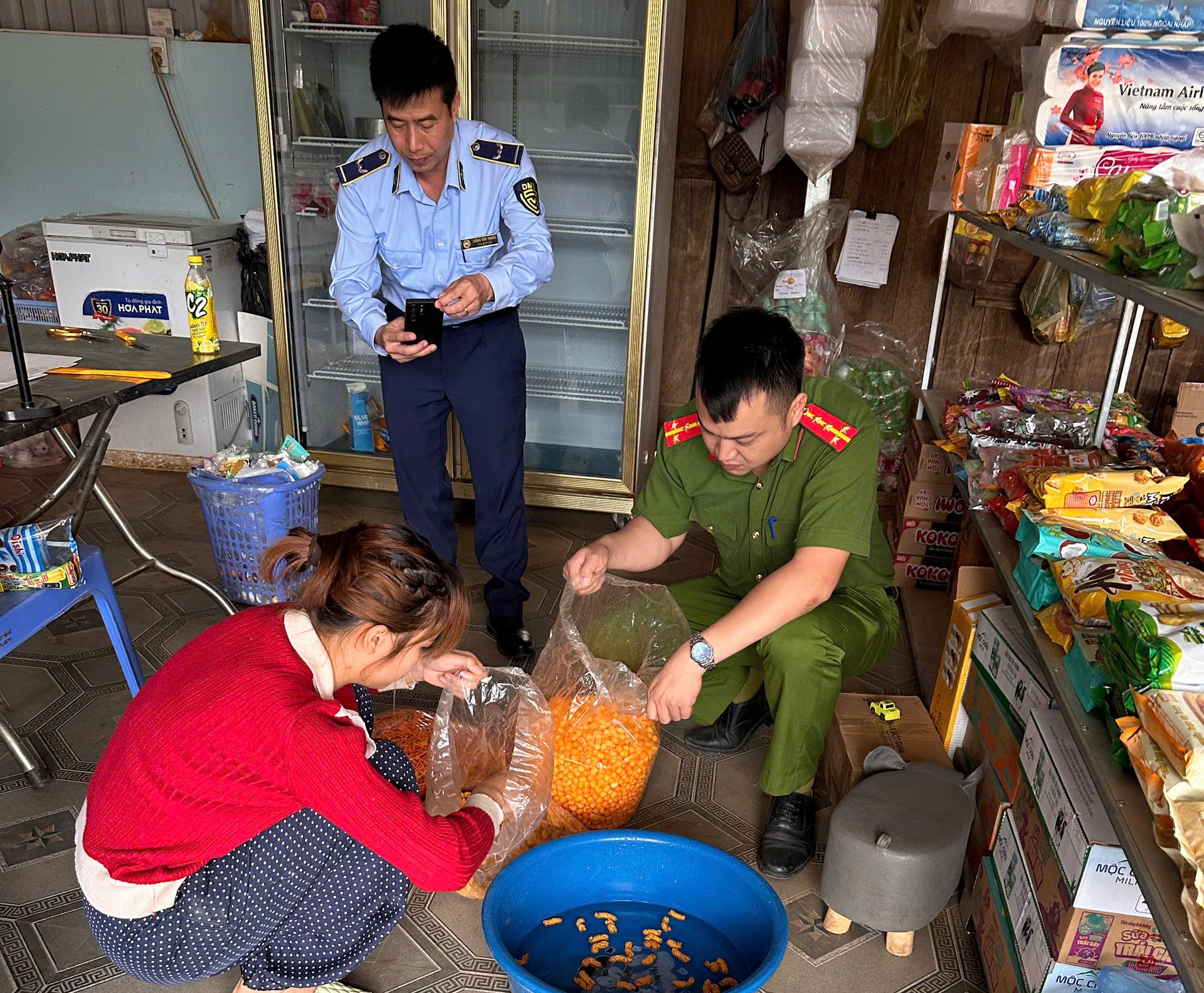 Đội QLTT số 2 phối hợp với lực lượng Công an xã Chiềng Sung kiểm tra và xử lý 03 cơ sở kinh doanh vi phạm, phạt tiền và buộc tiêu huỷ hàng hoá  vi phạm gần 15 triệu đồng.