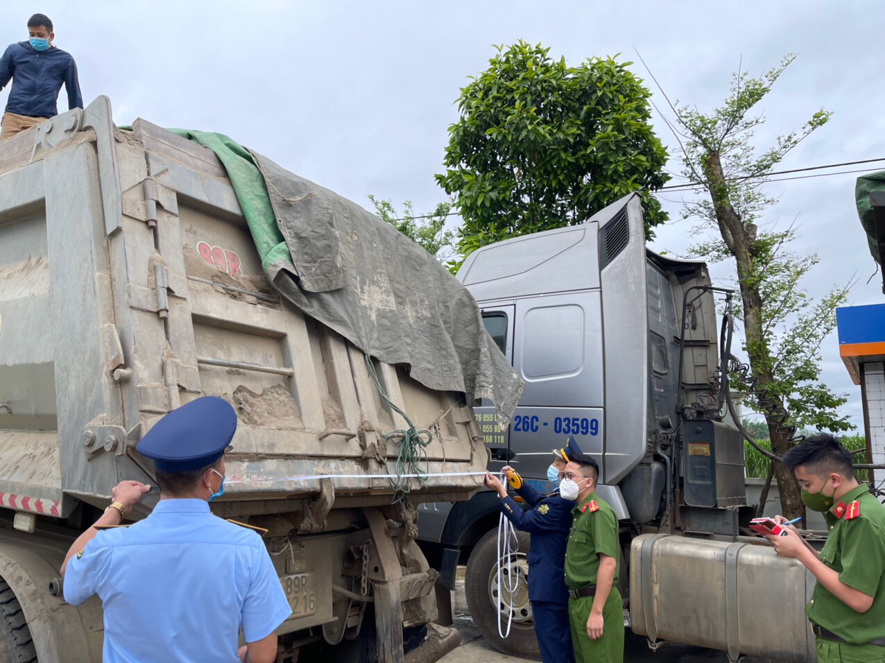Ngày 02/4/2022 Đội QLTT số 2 phối hợp với Phòng PC 03 Công an tỉnh Sơn La; Đội cảnh sát Kinh tế & Ma tuý Công an huyện Mai Sơn tiến hành khám phương tiện vận tải, đồ vật theo thủ tục hành chính đối với 03 xe ô tô đầu kéo; sơ mi rơ mooc. BKS 26C- 097.44; 26R – 005.70 do Ông Hoàng Văn Mạnh là lái xe kiêm chủ hàng hoá có địa chỉ Bản Hản, Xã Chiềng Mung, Huyện Mai Sơn; BKS 26C-035.99; 26R-006.26 do Ông Lò Văn Điện là lái xe kiêm chủ hàng hoá có địa chỉ Bản Nà Bó, Xã Nà Bó, Huyện Mai Sơn; BKS 26H-001.33; 89R-012.26 do Ông: Nguyễn Văn Minh là lái xe kiêm chủ hàng hoá có địa chỉ: Tổ dân phố 1, TT Sông Mã, Huyện Sông Mã. Tại thời điểm khám thực tế trên 03 phương tiện có vận chuyển 80,4m3 cát (khoáng sản), hàng hoá được quy định là ngành nghề đầu tư kinh doanh có điều kiện theo quy định tại Luật đầu tư số 61/2020/QH14. Lái xe kiêm chủ hàng không xuất trình được giấy tờ, hoá đơn để chứng minh nguồn gốc hợp pháp đối với số khoáng sản đang vận chuyển trên xe.