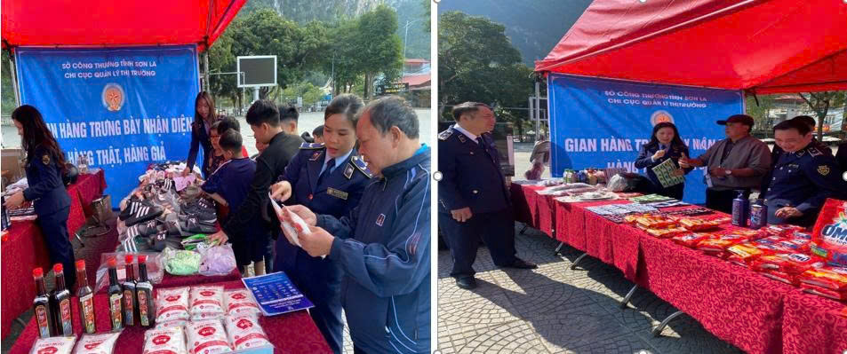 Ngày 29/11 - Tâm điểm sự kiện, Gian hàng chính của Chi cục đã được đặt tại Trung tâm thương mại Vincom Plaza Sơn La. Tại đây, công chức Chi cục Quản lý thị trường đã giới thiệu nhiều nhóm hàng tiêu dùng thiết yếu như quần áo, giày dép, phụ tùng xe máy, thực phẩm (mỳ chính, nước mắm) và các sản phẩm hóa mỹ phẩm như dầu gội, kem đánh răng, bột giặt… Mỗi mặt hàng đều có mẫu đối chứng để người dân trực tiếp so sánh giữa hàng thật và hàng giả. Các công chức chuyên môn hướng dẫn cách kiểm tra tem nhãn, mã vạch, quan sát bao bì, kiểu dáng, đồng thời trải nghiệm ứng dụng quét mã truy xuất nguồn gốc.