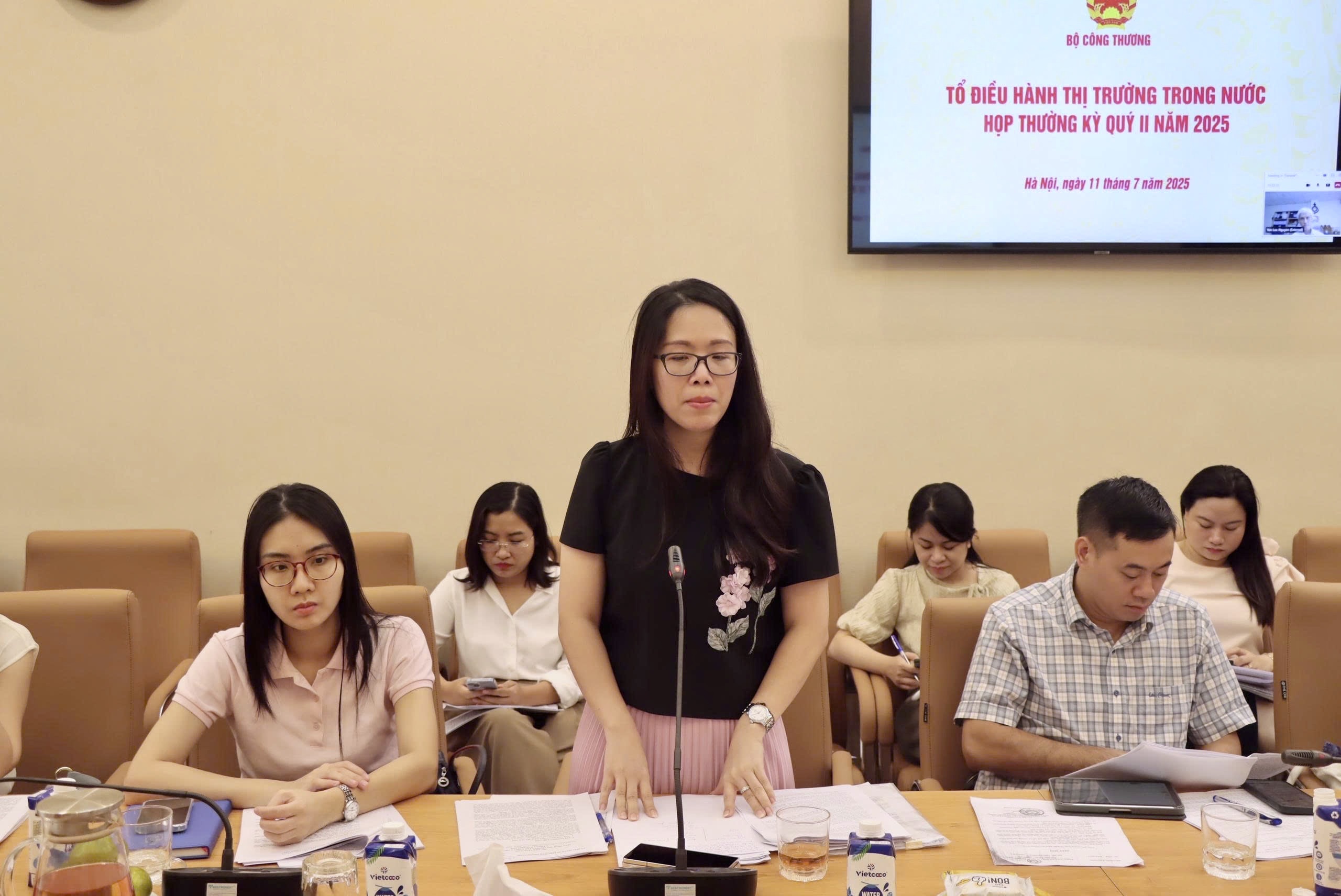 Bà Lê Thị Hồng, Thường trực Tổ điều hành thị trường trong nước thông tin về tình hình thị trường thế giới và trong nước 06 tháng đầu năm 2025